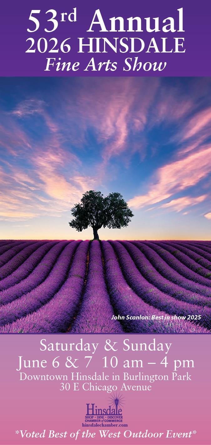 Heralded as one of the top shows in the western suburbs of Chicago! The Hinsdale Fine Arts Festival has received West Suburban Living's "Best Summer Art Show" for 2012 -2022. Located in the heart of historic downtown Hinsdale and set amongst the shady trees of Burlington Park, the show hosts over 80 qualified, juried artists.