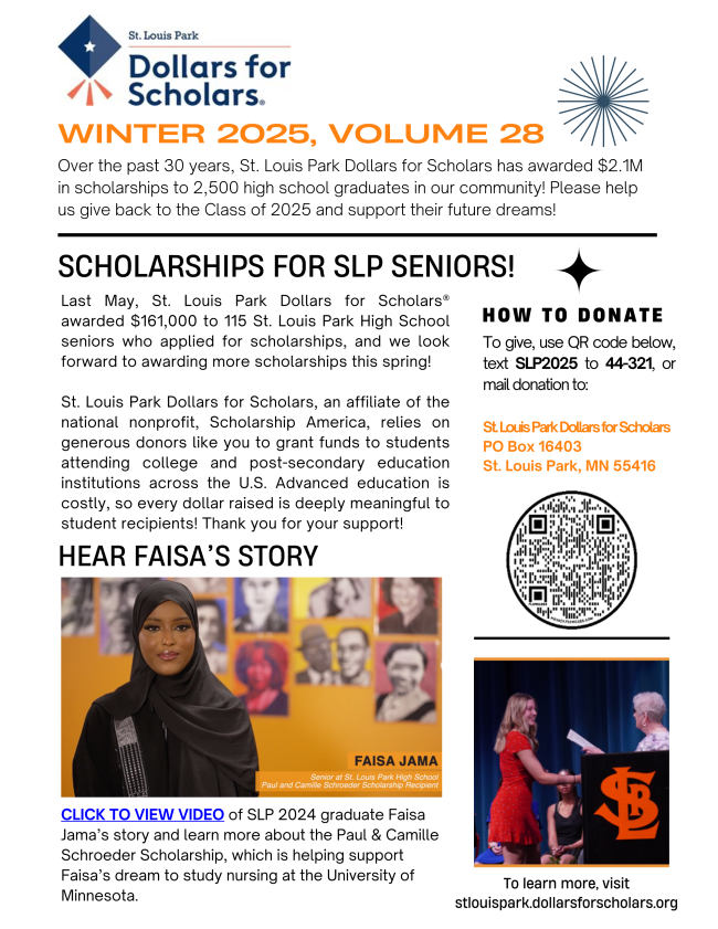 We partner to create a collaborative and inclusive learning environment for students, families and educators that fosters and embraces the brilliance of the St. Louis Park community.