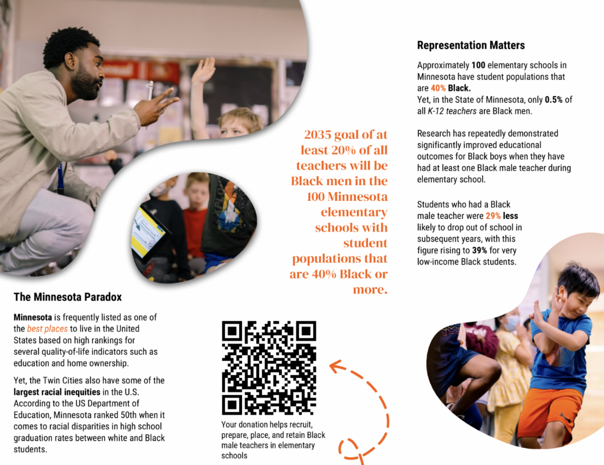 Your donation helps recruit, prepare, place and retain Black male teachers in elementary schools. | |