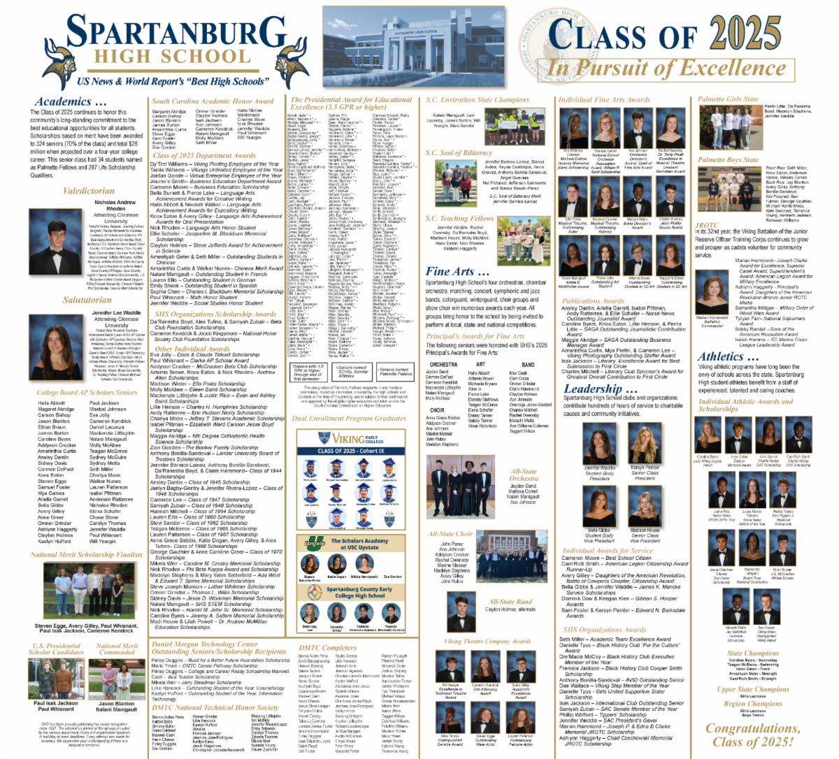 Principal Dr. Andrew McMillan echoed that pride and admiration, sharing, “I have thoroughly enjoyed my time with this group of students and I love them dearly. It’s been a joy to watch them navigate senior year, and I have no doubt they’ll go on to do great things. They have been outstanding ambassadors for Spartanburg High School.”