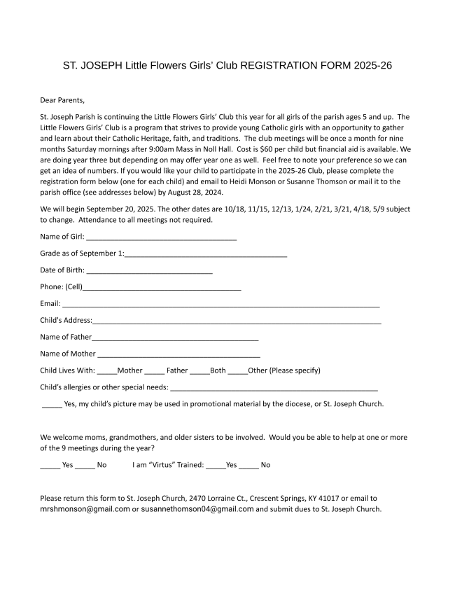 September 3 Mass Grades 4-8 9:00 a.m.