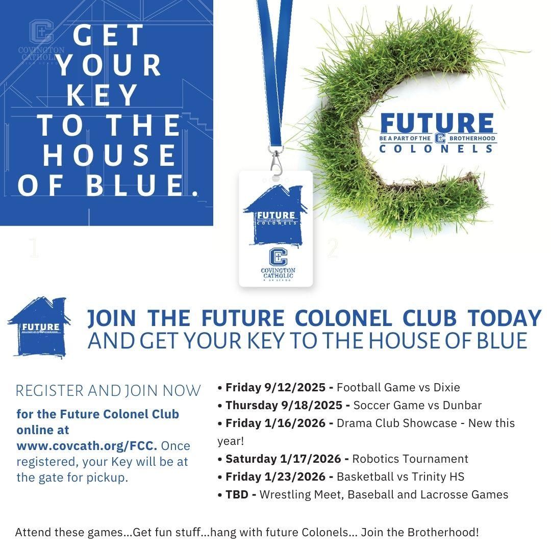 The Future Colonel Club is your ticket to the CovCath brotherhood in action. From the chants of the Colonel Crazies to the roar of the Friday night lights, this is your chance to be part of it all.