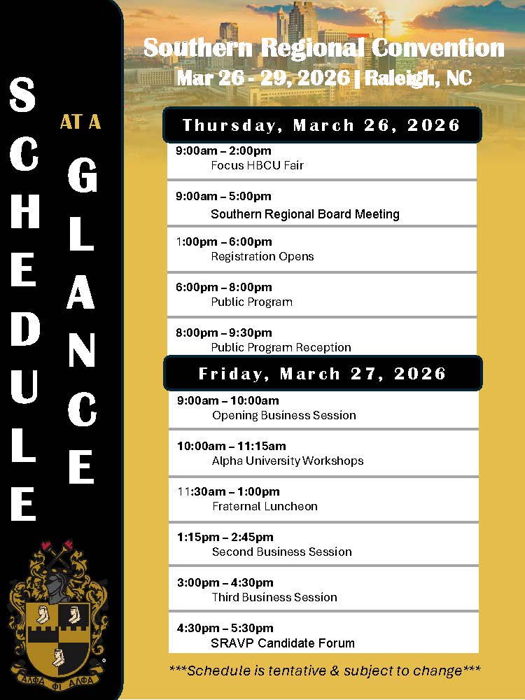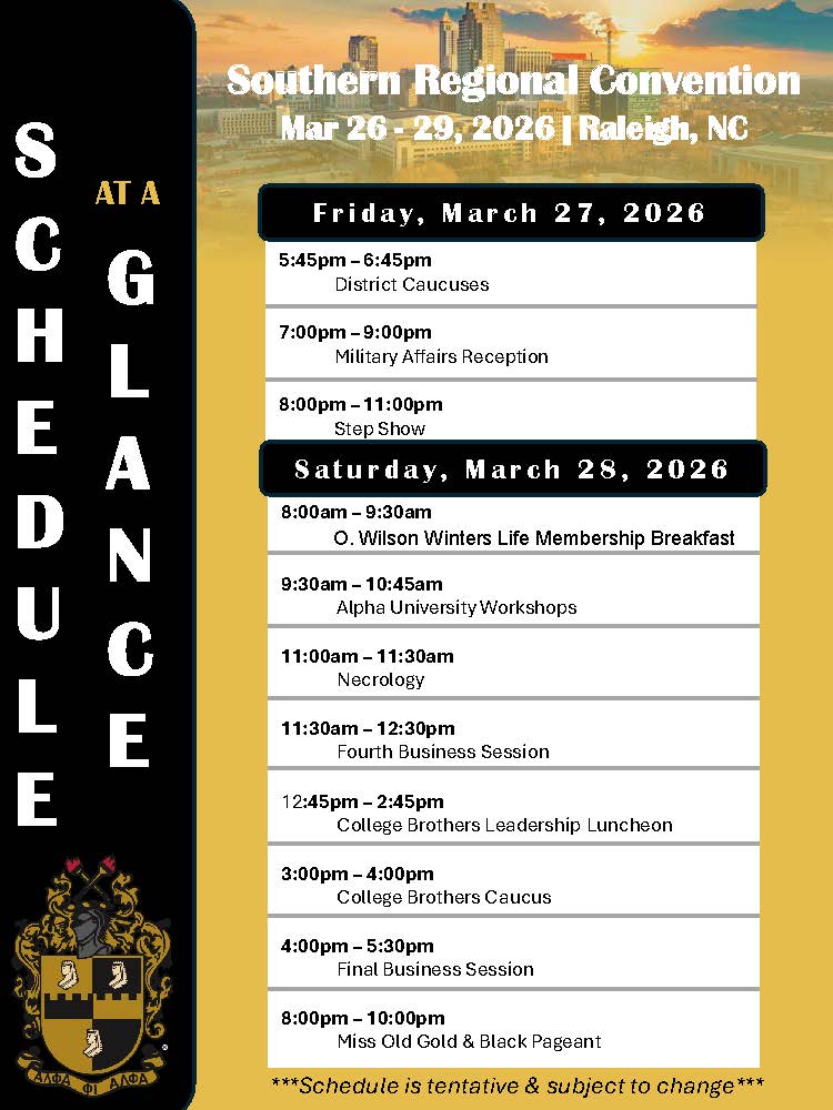 Excitement is truly in the air as Brothers from across the Southern Region prepare to converge on Raleigh, North Carolina—the City of Oaks—for the 95th Southern Regional Convention, taking place March 26–29, 2026. With registration already surpassing 1,300 Brothers, anticipation continues to build as regular registration closes on January 31st and late registration begins February 1st.