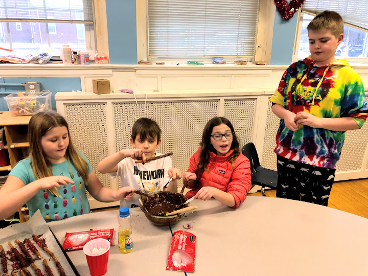 On our half day (Feb. 6th), we continued to share the love by painting heartfelt messages on wood slices with Katelyn, decorating conversation heart cookies with Tom, and creating Valentine’s day cards with Maddie. This month we also had our Make-N-Bake sale for St. Jude Children’s hospital. We’d like to thank everyone who donated whether it was monetary or by bringing in baked goods of their own. The kids did such a great job prepping all the goodies to sell and contributing their time at our booth. Together, we raised $460!!!