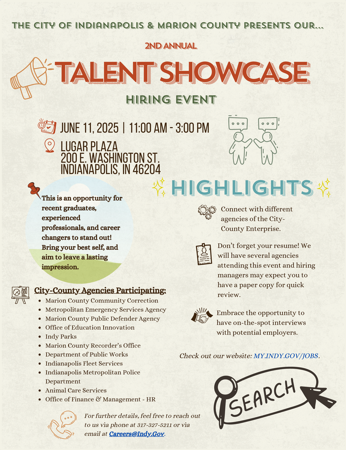 The City of Indianapolis and Marion County held a hiring event on June 11th. Yes, the date has passed, but there are still jobs! According to the Human Resource department, there are lots of jobs for folks in reentry. Says Rhonda in HR, “the Department of Public Works is always looking for good employees, as well as jobs in the animal care services and Indy Parks." You can check their website at my.indy.gov/jobs for more information!
