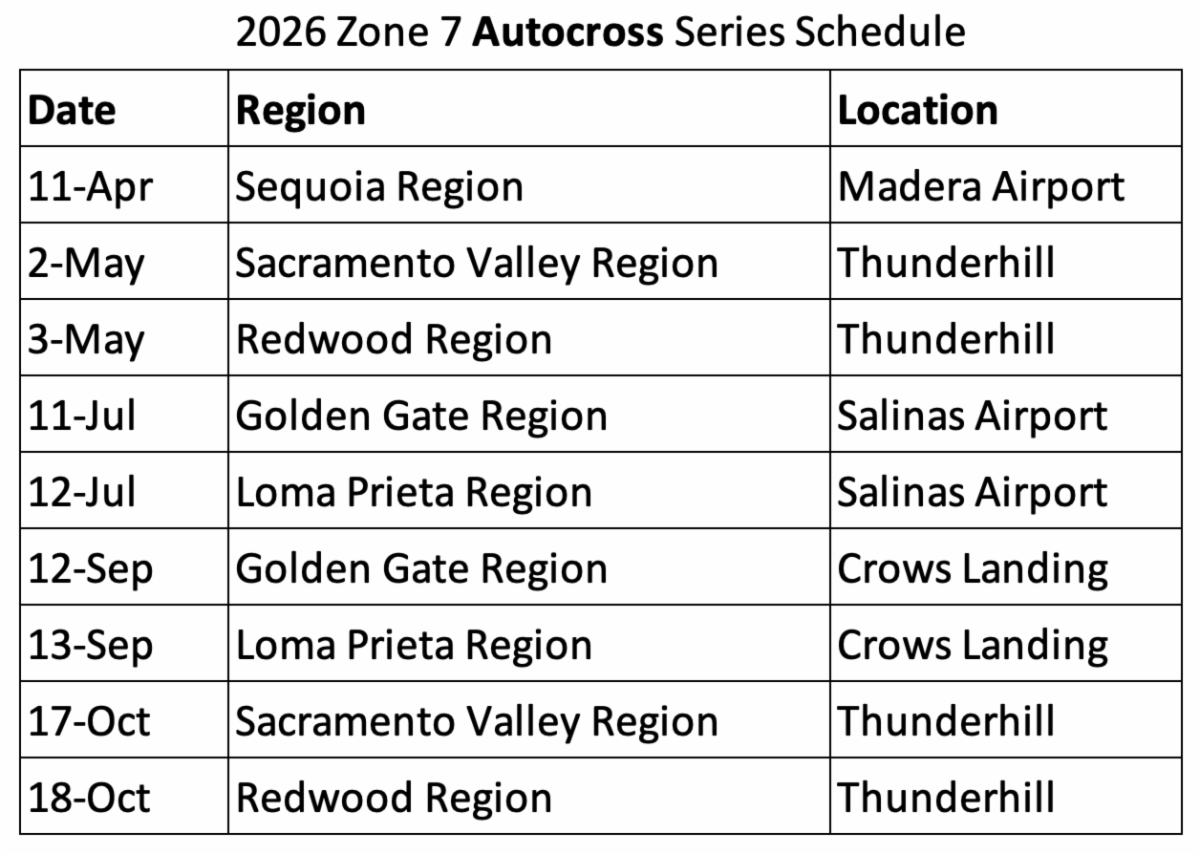 The 2026 Zone Autocross Series Calendar is listed below. Will we see you out there threading the needle between the cones? I hope so!