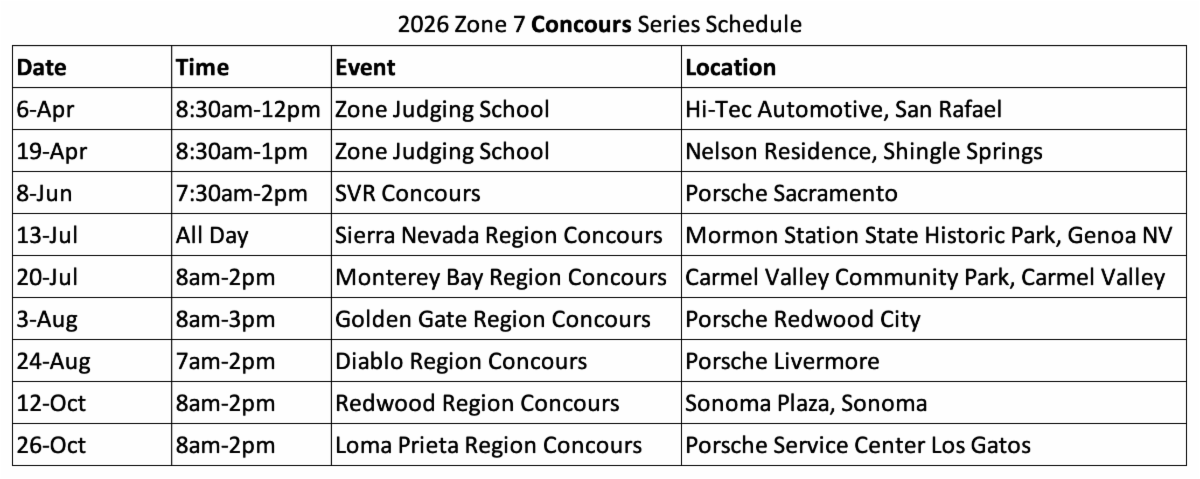 Continuing as Zone 7 Concours Co-Chairs are Roy Schauben and Simone Kopitzki. Our Concours Series keeps growing, with more participants and more stunning cars each year. Look for the 2026 calendar to be posted SOON.