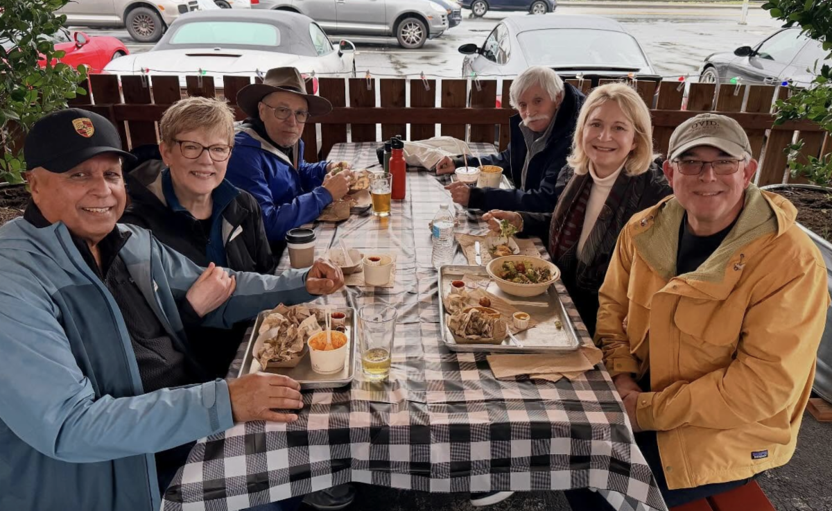 On arrival at the final destination, Gott’s Roadside, PCA-RR members were directed to a reserved parking area adjacent to our designated covered and heated picnic area. Although sweaters and warm jackets were still the preferred fashion, most of the hardy Fun Runners hung out and rehashed the morning’s events with their fellow driving enthusiasts.