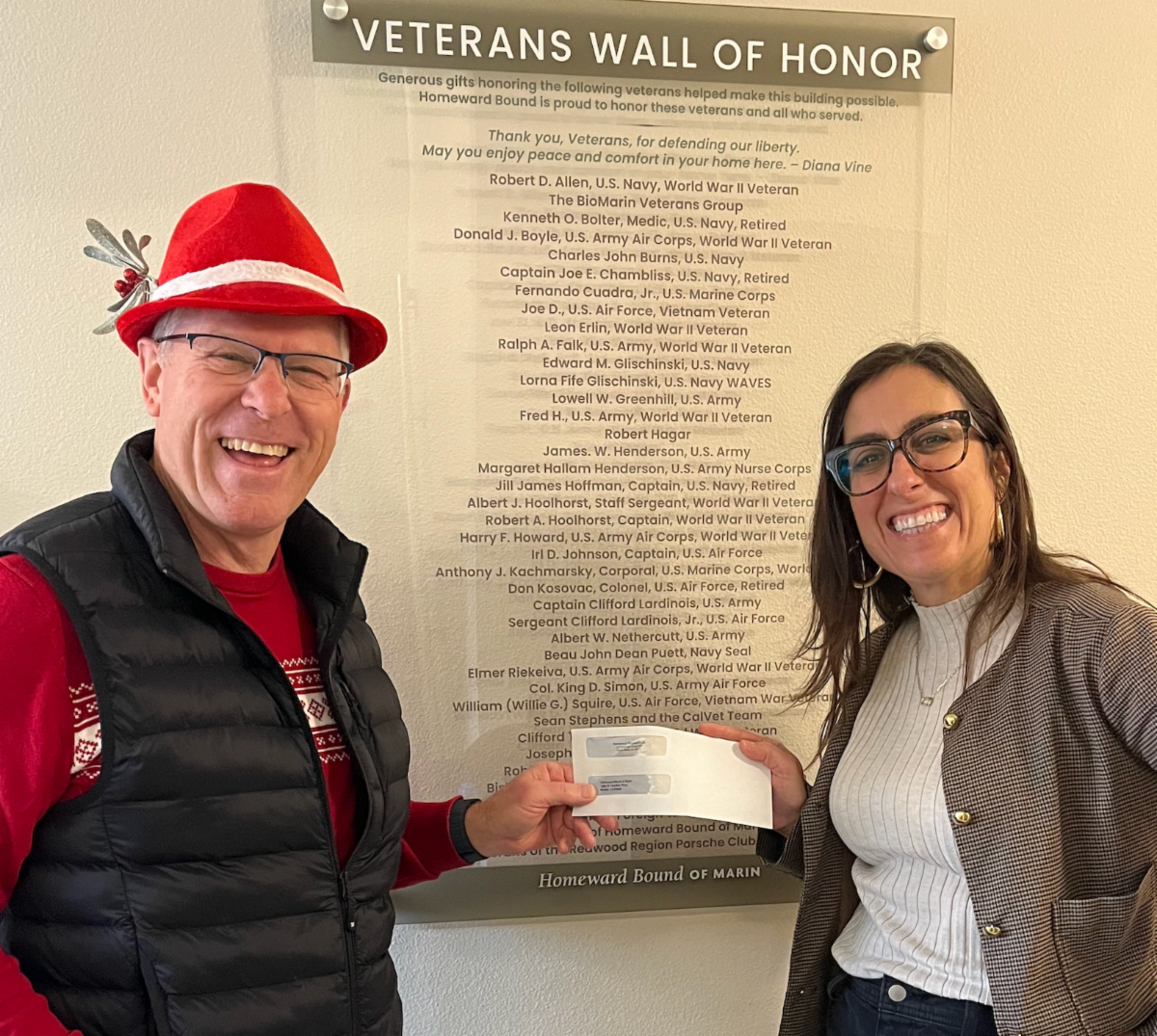 At Homeward Bound of Marin, Santa got to see our club’s entry on the Veterans Wall of Honor in the veterans housing complex they completed in 2024; we gave our first donation