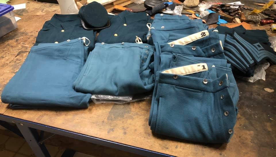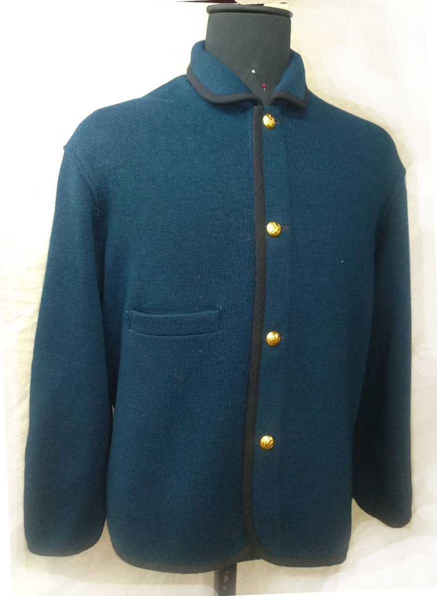 While extent blouses are not known to exists, we did have the good fortune of examining an original pair of knit trousers that came for sale, first at an auction of 7th New York National Guard items, which was flipped a week later at the Hartford Civil War show. The obvious parts of the grouping went quickly, ie the knapsack, knife and kepi, but nobody could make sense of the trousers. Regretfully, having just purchased a Bartholomae Canteen, I did not have enough cash to buy them. I did however, explain to the dealer what he had, and he graciously allowed me to examine them.