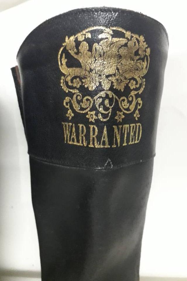 The gold foil debossing of these boots required that line for line vector artwork be created, to generate a plate.