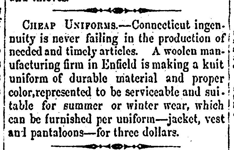 It is ironic to read period accounts of the use of knit goods, because it reflects the direct opposite of that was required to have the fabric reproduced. In the early part of the American Civil War, there was sudden and unexpected demand for textiles to clothe the army. Agents were sent abroad to purchase yard goods, while those at home worked beyond any previous capacity. Knit goods were looked to as a ready expedient. With woven goods, it can take anywhere from 20-60 hours to warp and prepare a loom, whereas a knitting machine can be threaded in less than 20 minutes. Moreover, the machines were marketed as being as having a very shallow learning curve, meaning that a moderately skilled person could be producing textiles in minutes.