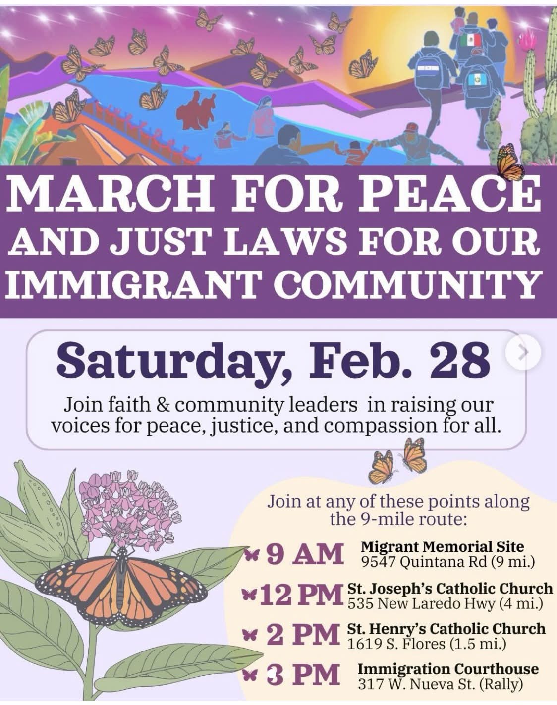 MARCH FOR PEACE: Pastor Megan will be attending this event on Saturday - joining at St. Joseph's Catholic Church (535 New Laredo Hwy) at 12pm. This will be a 4-mile walk at this point in the march. Interested in joining or carpooling? Contact Pastor Megan