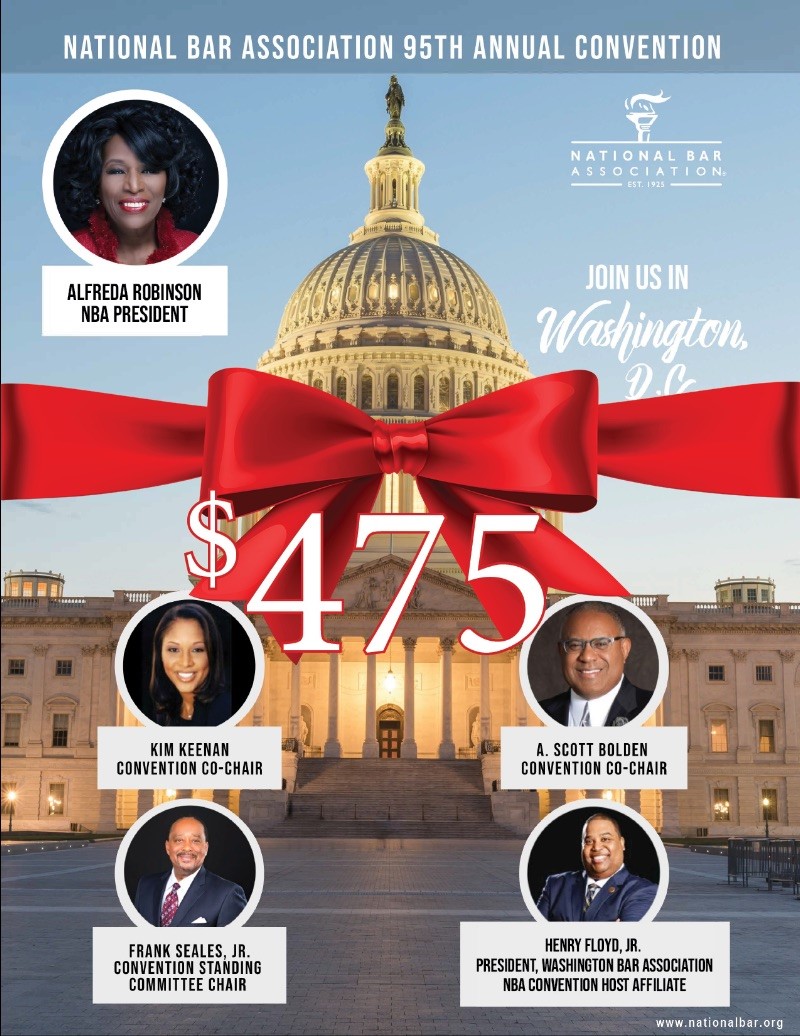 The National Bar Association (NBA) Annual Convention & Exhibits is the largest gathering of African-American lawyers, judges and law students in the United States. It is the preeminent showcase to establish professional relationships, as well as to discuss trending legal, social justice and economic issues. In addition, the Convention offers professional development through a robust NBA sponsored Continuing Legal Education Program ("CLE").