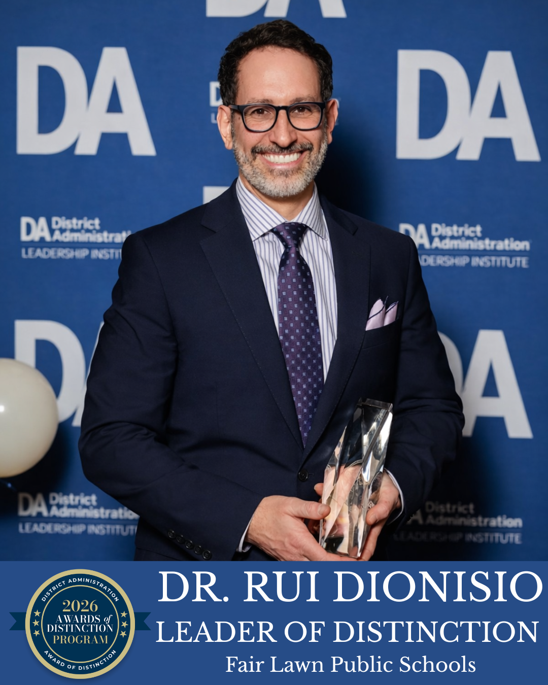 FAIR LAWN, NJ (JANUARY 8, 2026) – Dr. Rui Dionisio, Superintendent of Fair Lawn Public Schools, has been named National Leader of Distinction at the 2026 Awards of Distinction program, announced at the District Administration Leadership Institute (DALI) National Superintendents Summit.