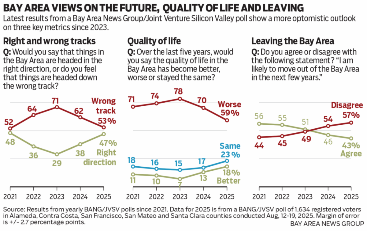 Each year, the Bay Area News Group and Joint Venture Silicon Valley, a local think tank, ask a simple question packed with layers of meaning: Is the Bay Area headed in the right direction?