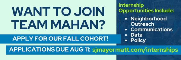 | | Calling all high school and college students with a passion for civic engagement! Our office is looking for capable young people to join our dynamic team. As an intern, you’ll have the opportunity to do exciting, hands-on work with our Neighborhood Outreach, Communications, Data, and Policy teams. Apply for our Fall/Winter cohort by August 11, 2025 at sjmayormatt.com/internships. | | |