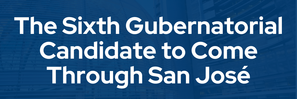 The Mercury News said this week that it seems as though the road to the Governor’s Office runs through San José. And it’s certainly been feeling that way!