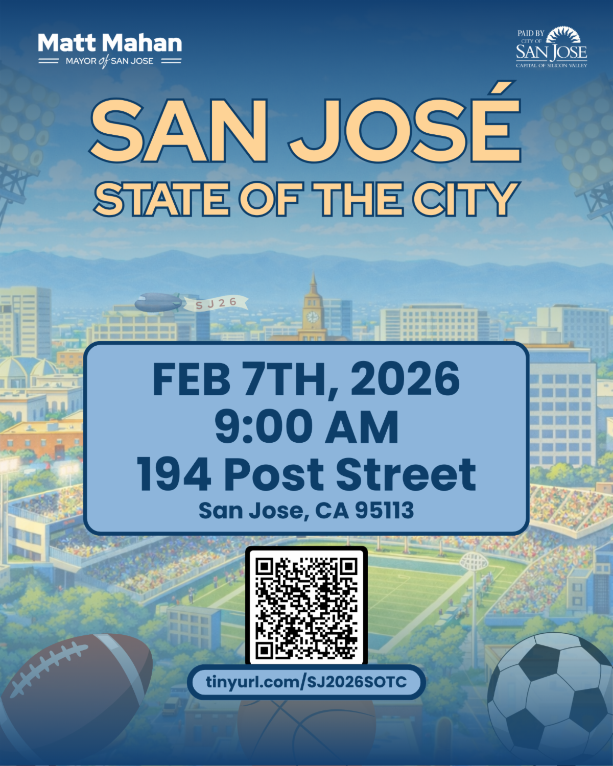 | | Planting Trees in Honor of Dr. King | | Martin Luther King wanted his legacy celebrated as “a day on, not a day off”. Here in San José, alongside Our City Forest, we took that message to heart. Thank you to the many volunteers for coming together to strengthen our city, honor Dr. King’s call to service, and prove that collective action can change our world. | | 2026 has arrived — and San José is ready to show up and show out. From wrapping the rotunda to transforming streets into stages, we’re gearing up for block parties, concerts, activations, and more. This is our city, our celebration, and everyone’s invited. Explore the full lineup of events here: sj26.sanjose.org | | Beautifying Julian Street | | In San José, every Saturday starts with service. But our Tackle San José clean-ups are extra special. In just two weeks, our downtown will be hosting our State of the City, Super Bowl block parties, national headliners, and more. We want our residents to be proud of the city they call home and our visitors to see us at our very best. Thanks to BeautifySJ, Caltrans, our Conservation Corps, the Silicon Valley KASCL and KAJVL and our 50+ volunteers for joining in today. Don’t miss out on next week’s clean-up, and make sure to RSVP for State of the City: tinyurl.com/SJ2026SOTC | | | | |