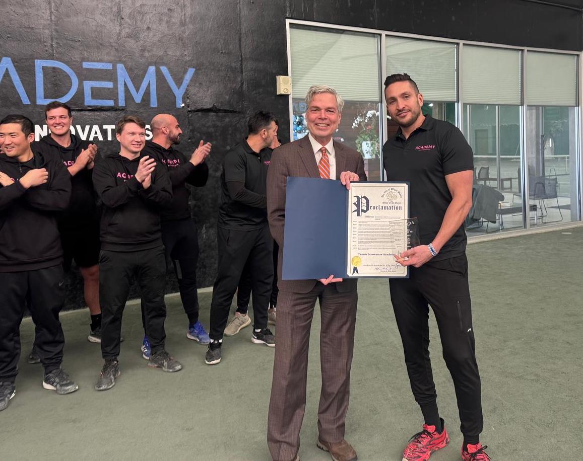 For ten years, Tennis Innovators Academy has been providing world-class tennis training, inspiring excellence in the sport, and promoting athleticism, teamwork, and personal growth for players of all ages and skill levels, right here in Delfino Park. To mark the occasion Mayor Roach presented a City Proclamation to Cesar Andrade, Regional Director of Operations & Master Tennis Professional.