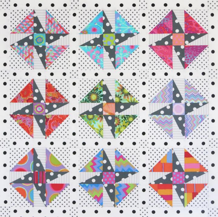 * Step-by-step video lessons shot in my studio on fabric cutting and block construction, in particular the paper piecing of the skinny triangles. (There was no way I would piece those triangles the traditional way!)