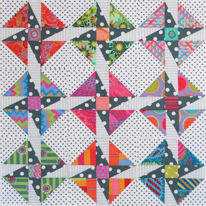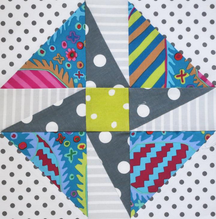 It started with Kaffe Fassett Collective prints (yum!) for the large triangles and the center squares.