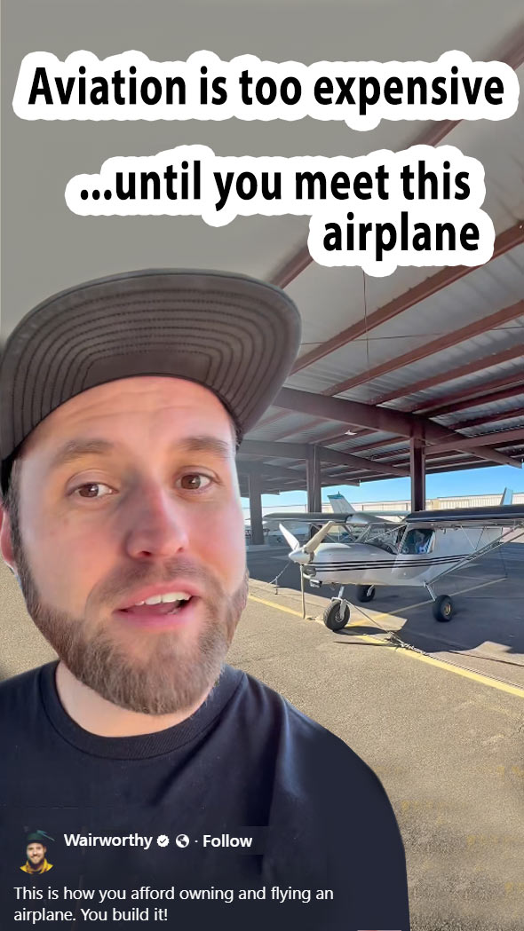 | | "Aviation is too expensive. That is, until you meet this airplane. This is the Zenith STOL CH 701. It's an incredibly capable and affordable aircraft. This airplane can takeoff and land in less than 100 feet, making it completely possible to do backcountry flying." | | "It's the little brother to my airplane (STOL CH 750 Super Duty)... the plane is incredible. It's easy and super fun to fly and it has extremely low operating costs, like $25 - $30 an hour. And the real kicker is that Zenith recently updated this kit to a CNC match hole drilled kit." | | "I'm going to show you, step by step, how to build an airplane like this on a budget, and then once we're done I'm going to fly it around and prove that it's a safe and reliable aircraft and then give it away to one of you... Follow my page to see me bring one of these to life." | | "Whether you follow along for the adventure, the chance to win an airplane, or to tell me I used the wrong rivets, I hope these projects inspire others to see what is possible. Kitplanes are key to the future of general aviation, and I intend to make that future visible." | |