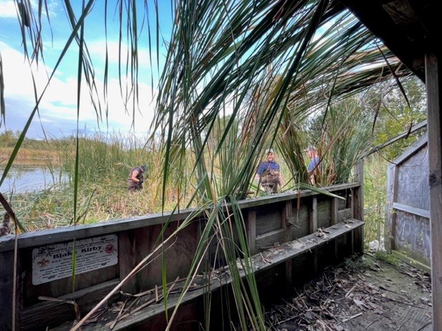 A crew of Green Bay Chapter volunteers came out in force on the Friday before the youth opener to brush the disabled accessible blinds on WWA's Abrams property. Blinds are available for public use.