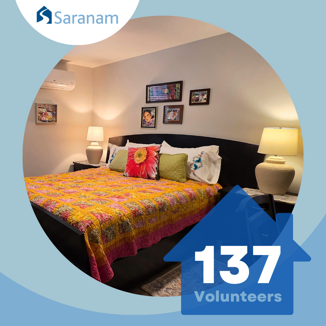 Last November, volunteers prepared ten homes for the latest cohort at Saranam's ADC Family Campus. There were 137 volunteers for a total of 1,239 hours! These homes were decorated with care and shelves were stocked. The families appreciate the warm welcome, colorful decor, and so much more. They feel like they are walking into a home, their own home.