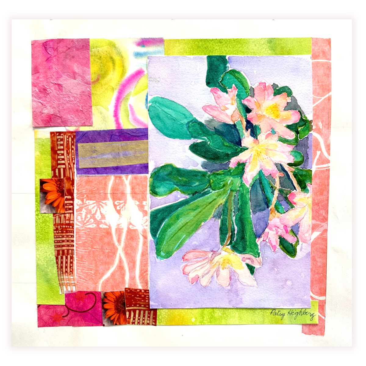In January and February, the Mezzanine Gallery features Flower Power: An Exhibition of Watercolors, Prints, and Collages by Patsy Highberg.