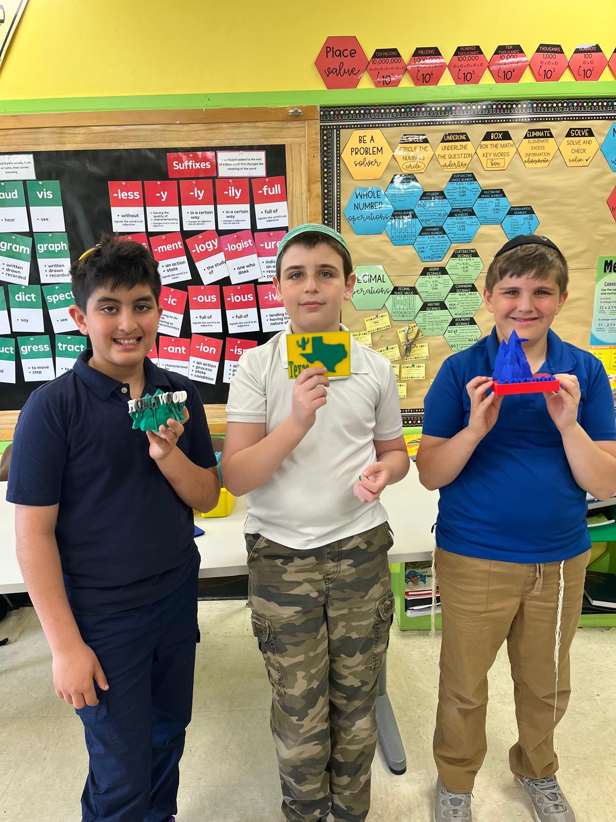 As part of their preparation for the upcoming State Fair, fifth graders are bringing Mercaz’s newest technology into the classroom – 3D printing! After researching their assigned states, each student selects a key feature of the state to represent and bring to life through 3D design. Using Tinkercad, a beginner-friendly platform, they learn to create, refine, and optimize their models for printing – developing real-world design and problem-solving skills along the way. Students then take turns using our 3D printer to produce their state-inspired creations, turning their digital ideas into tangible objects. One fifth-grader designed a facsimile of the Grand Canyon for Arizona, and another printed the Hollywood sign for California. We can’t wait to see their final projects on display at the Fair!
