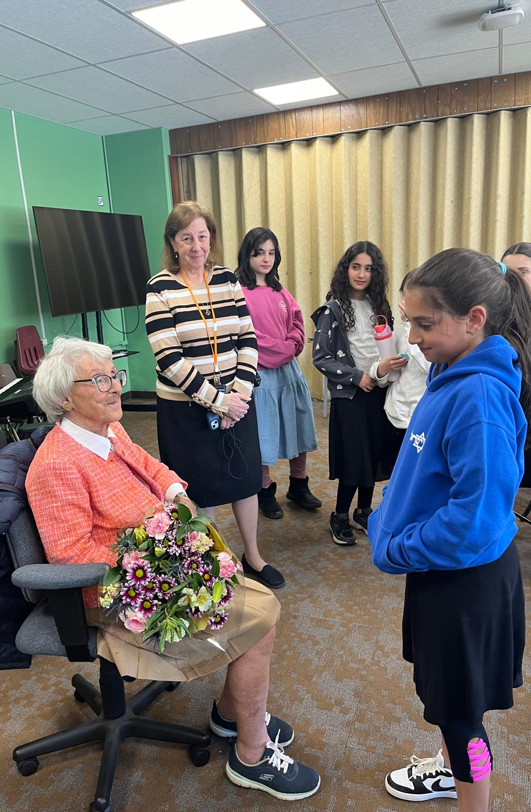 On Holocaust Remembrance Day, Mercaz Academy fifth- and sixth-graders had the meaningful, and increasingly rare, opportunity to hear from a survivor in our community. Zelda Polofsky, a Plainview resident born in Lithuania who survived the Holocaust in hiding, shared her story in a moving Yom HaShoah program.