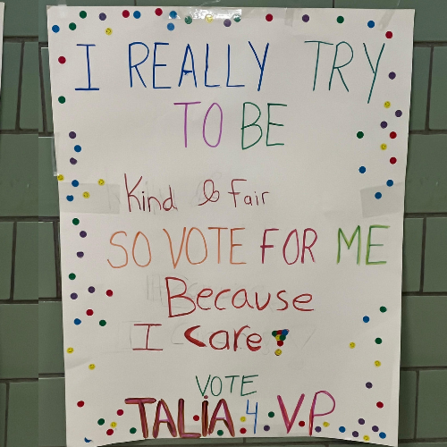 This year, the position of Director of Volunteers, or DOV, has opened to fifth graders eager to serve the school community. It is by far the most hotly contested position, with six candidates vying for two spots. Director of Volunteers, while a junior council position, is an important one: DOVs are responsible for recruiting students to participate in Council events and activities, and liaising with the President, Vice-President, Secretary and Treasurer to ensure that all event needs are met. One empowering feature of the Mercaz election process: while some will attain elective office, all candidates will be members of the Student Council.