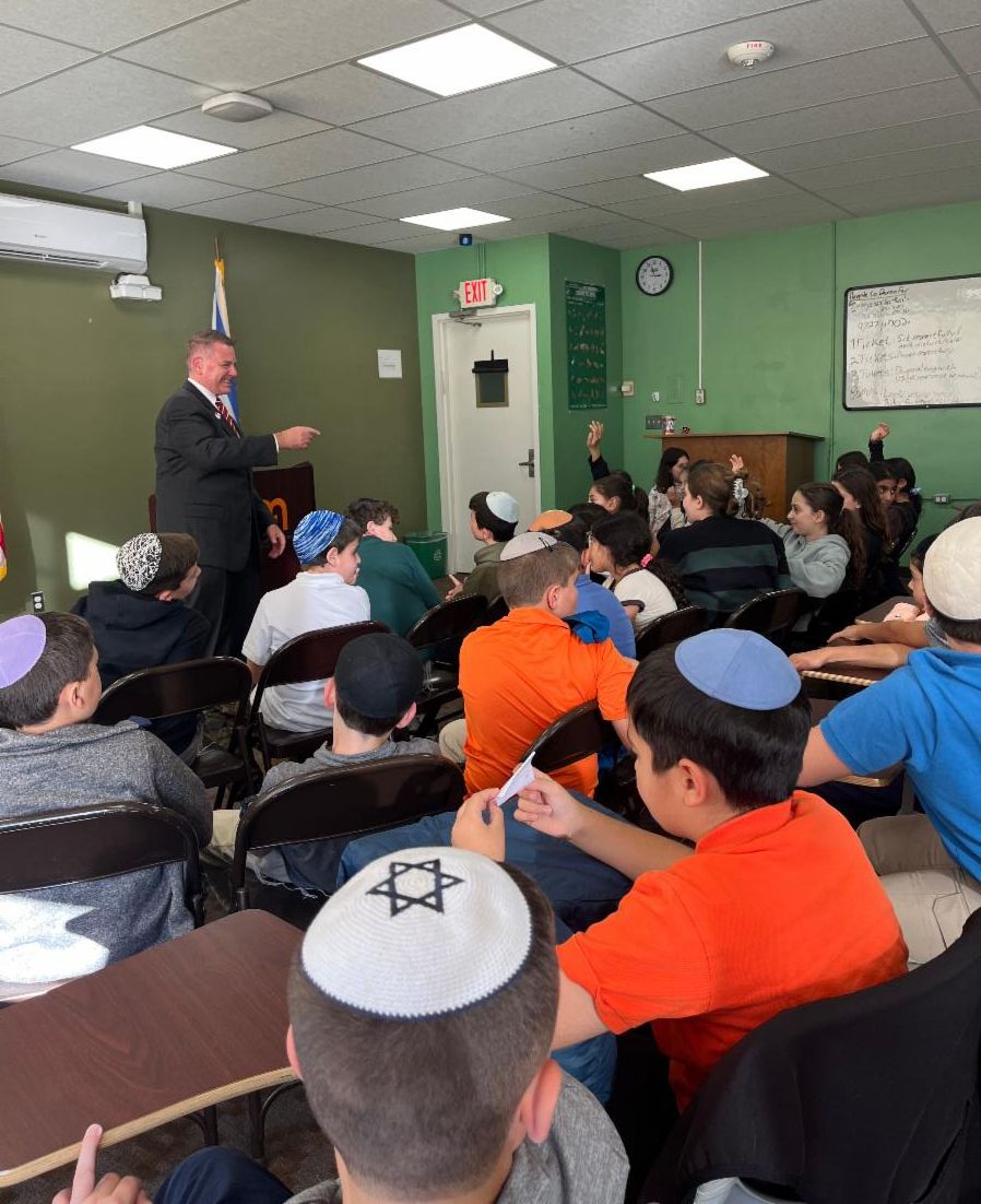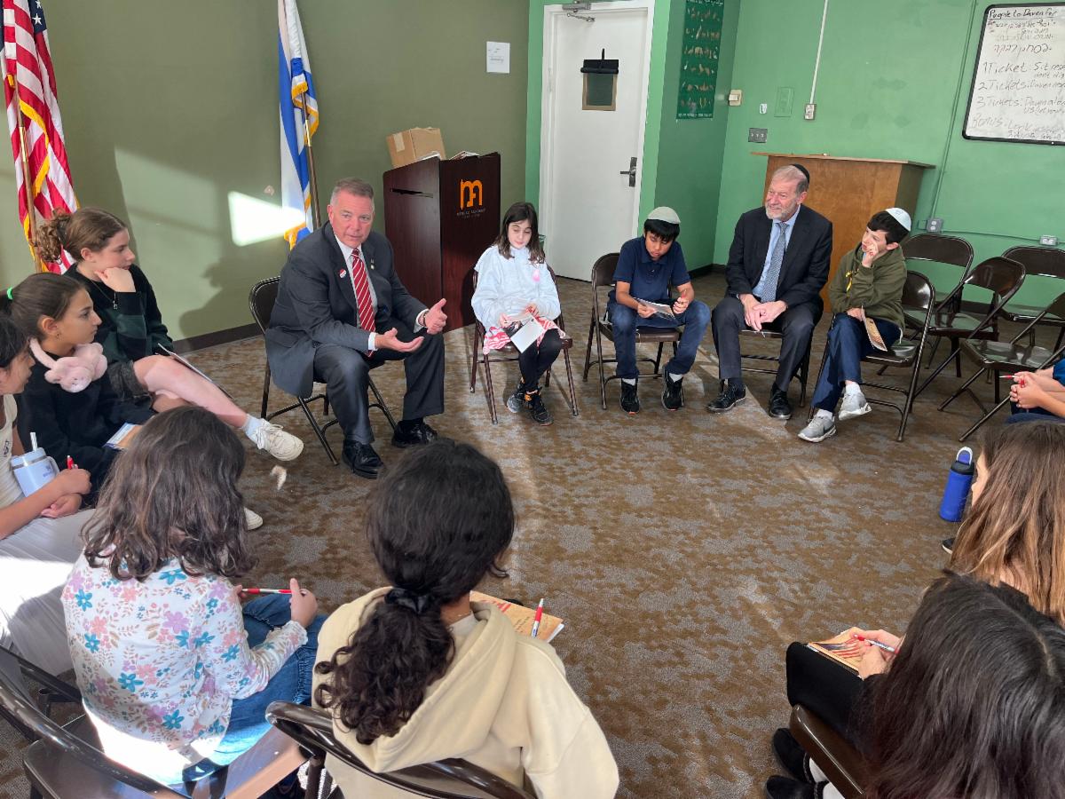 Mercaz Academy’s fourth-, fifth- and sixth-grade students got a firsthand look at democracy in action this week as State Senator Steve Rhoads came for a visit, bringing insider insights into civic responsibility, lawmaking, and representation and even advising our Student Council candidates on their own current campaigns.