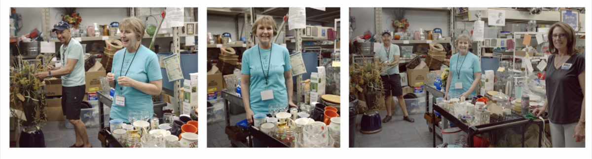 Victor Duncan is retired from a career in business administration and has volunteered at The Love Seat since 2016. He has done everything from fixing clocks to arranging flowers, a skill he learned through an elective college class many years ago. Victor shared, “I never expected to use what I learned in that class, but it has come in handy as we often get donated silk flowers and various containers you can combine to create arrangements people love to buy.” Victor spends most of his volunteer time sorting, cleaning and displaying items in the housewares department where he, like Lugine, finds the teamwork and friendships meaningful. Victor also loves the recycling aspect of The Love Seat where cast offs are put to good use.