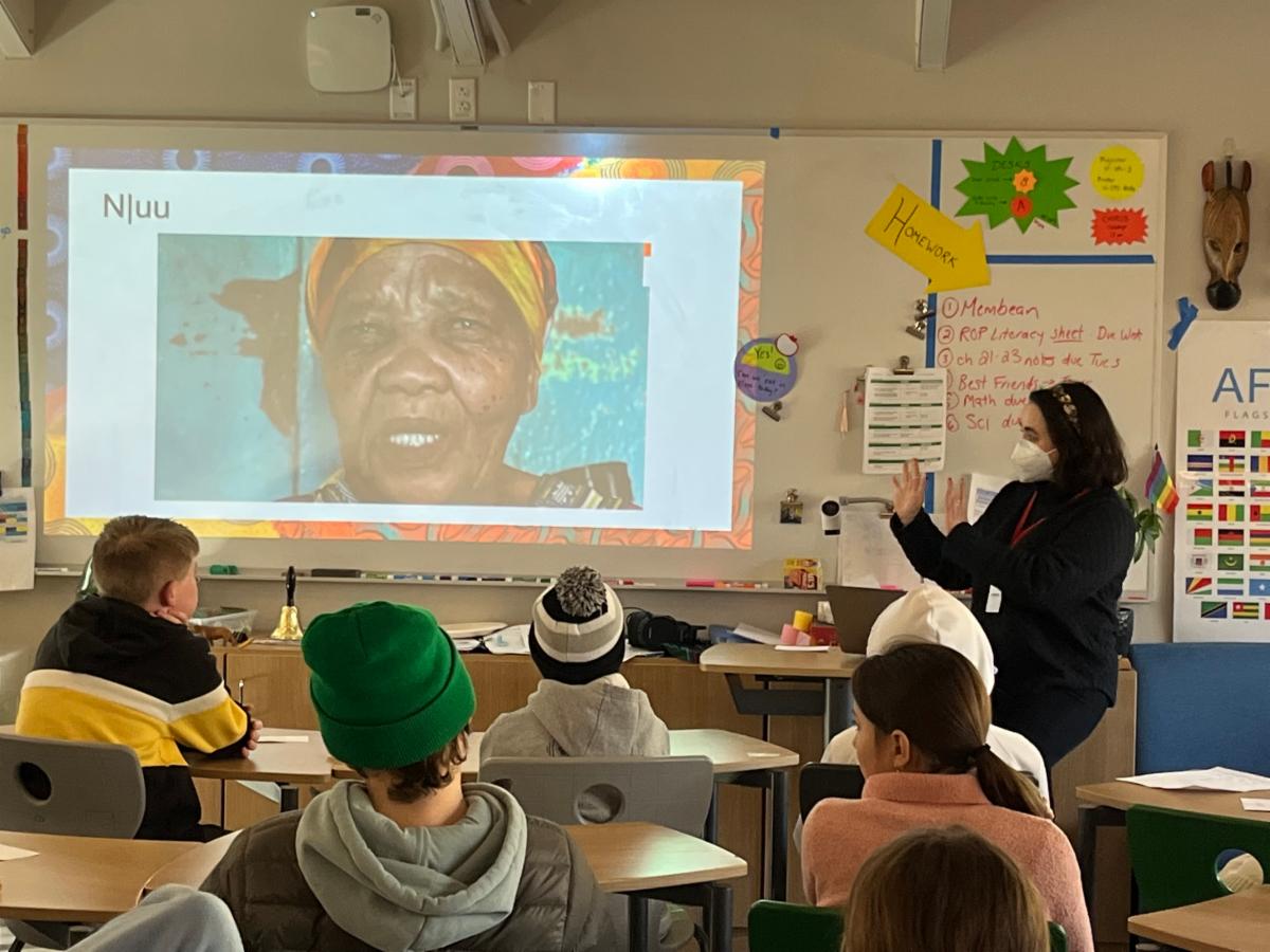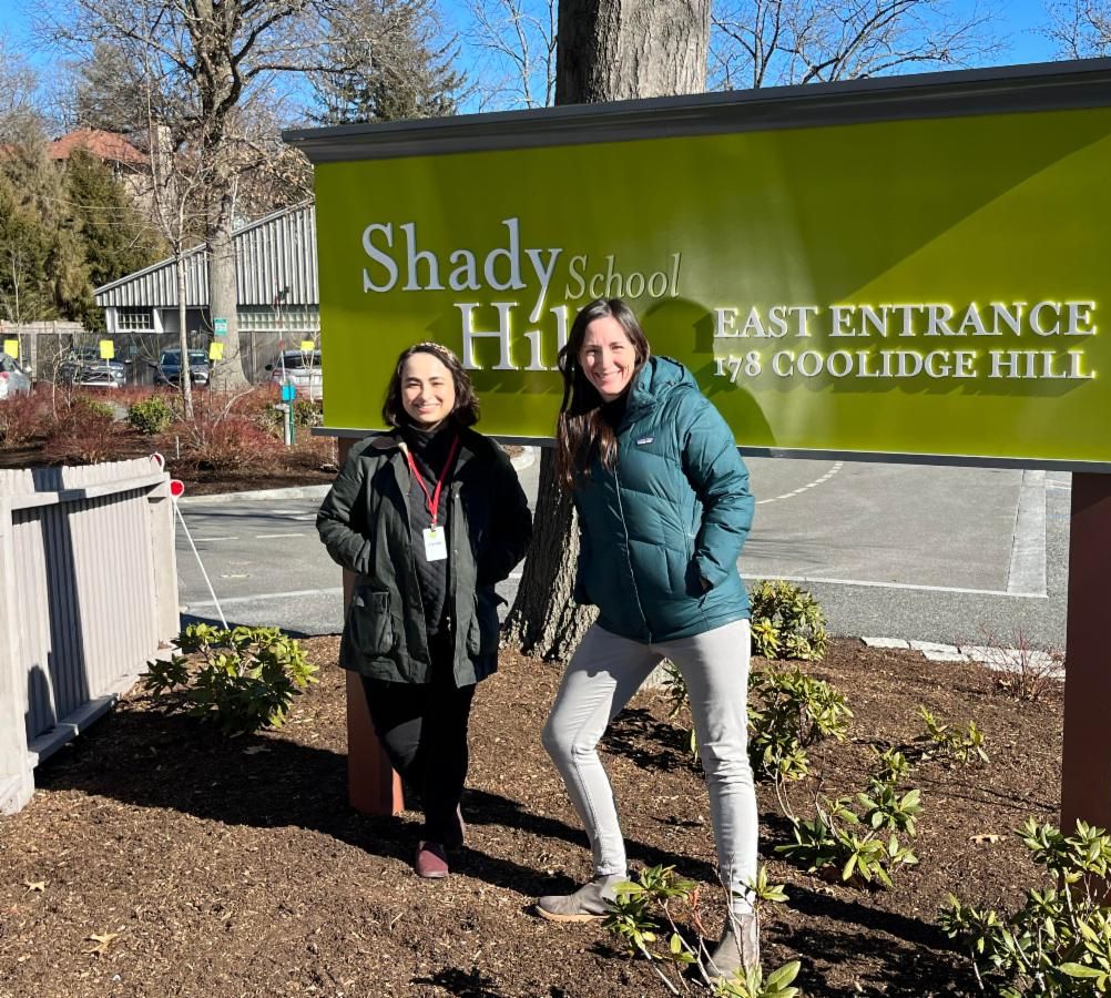 In February, Grade VI students benefited from a visit from alum Mirella Blum '10, a postdoctoral fellow in the linguistics department at Dartmouth College. Mirella studies African languages, including undocumented and "endangered" dialects. She credits Shady Hill with teaching her how rich Africa is in culture, languages, and experience. Earlier this year, Mirella reached out to her former teacher Ms. Katherine Hesko to schedule a visit, hoping to enrich Grade VI's Central Subject study of Africa. (Lower photo: Mirella on left, Ms. Hesko on right.) In the spring, Mirella will be teaching a course at Dartmouth titled "Languages in Africa" that has similar throughlines and content to what is covered in Grade VI's Central Subject study.