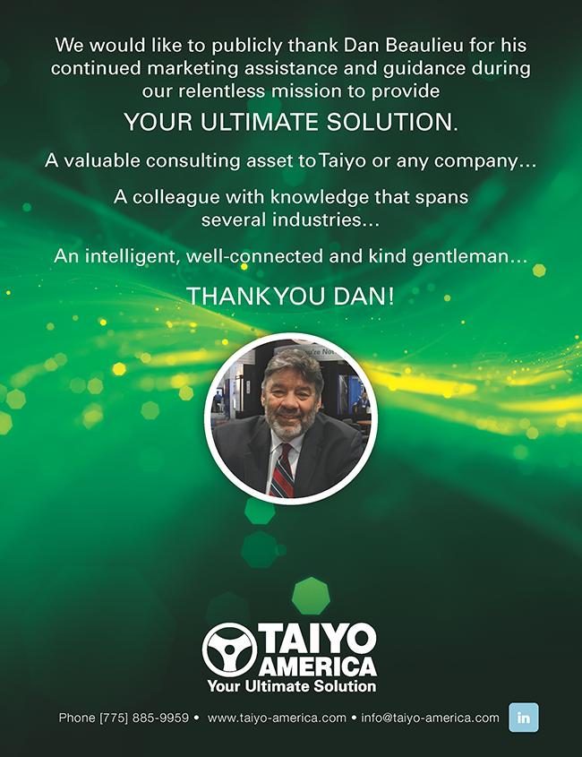 As we all know customer service is all about people, people working with people, and Taiyo America's customer service team is no different; Linda Merrell and Sonja Crim have been with Taiyo America for 22 and 21 year respectively getting to know the customer and understanding their habits. The feedback from our customers on surveys has been outstanding and they are an important part as to why we have retained our customer base and built such a strong business in North America. As the marketplace changes, there continues to be an emphasis on the customer experience and Taiyo America will always support our customer base.