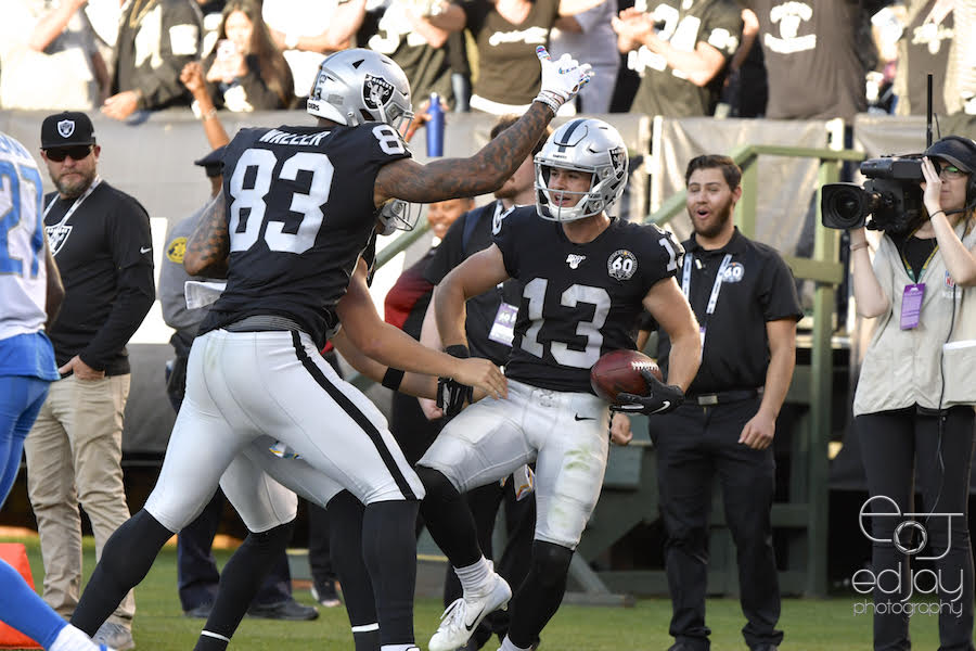 Oakland Raiders wide receiver Hunter Renfrow (13) celebrates after his game-winning touchdown against the Detroit Lions on Sunday, Nov. 3 at the Oakland Coliseum. Final score: Raiders 31, Lions 24. To view a photo album, visit our
