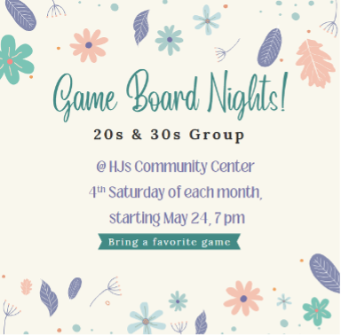 Our Sunday discussion group has a new meeting time—join us at 6 p.m. on Sundays at HJ’s (instead of after the 10:15 a.m. service). We’ll continue to gather for brunch on the third Sunday of each month following the 10:15 service, and we won’t meet for discussion group on those Sundays.