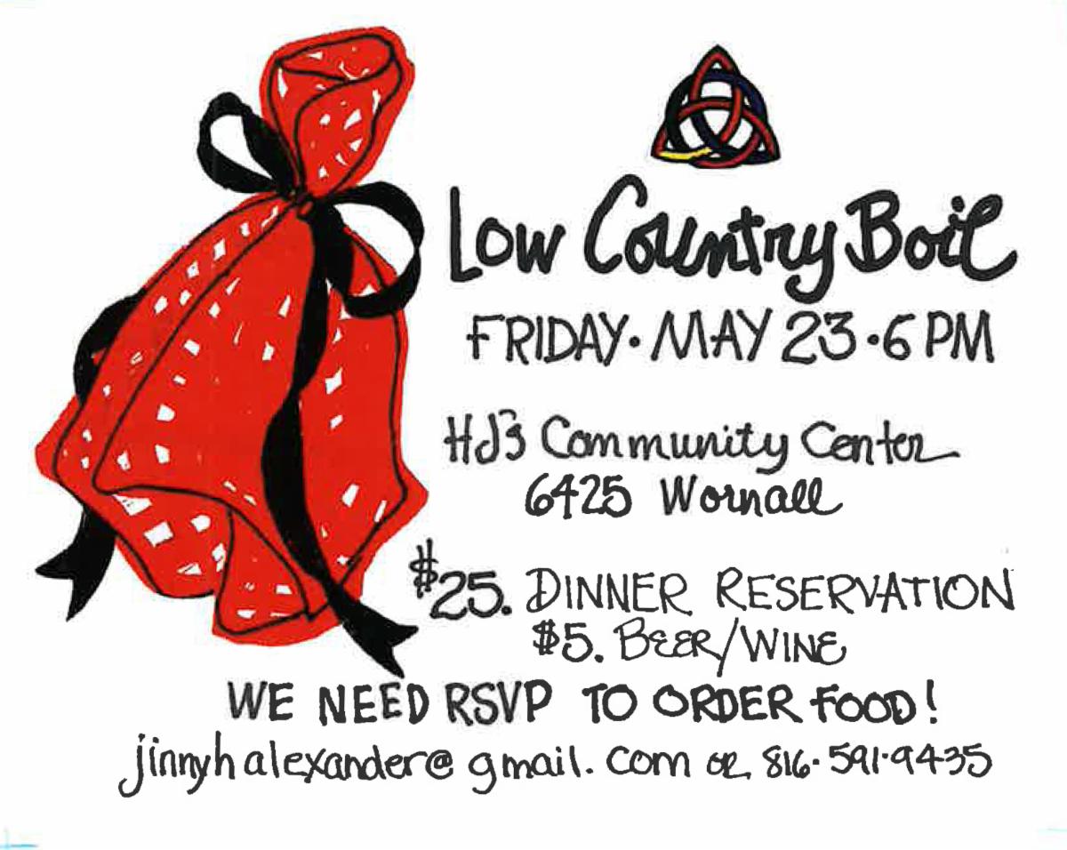 Friday, May 23 – Low Country Boil at HJ’s: food, fun, and fellowship for all ages, beginning at 6 p.m.