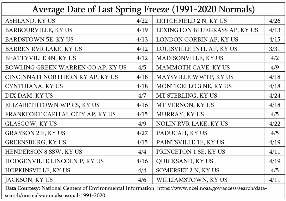 For additional context, I’ve included a table showing the average last freeze dates for various locations across Kentucky. While much of Western Kentucky has already passed this point, Central and Eastern Kentucky are still roughly a week or two away.