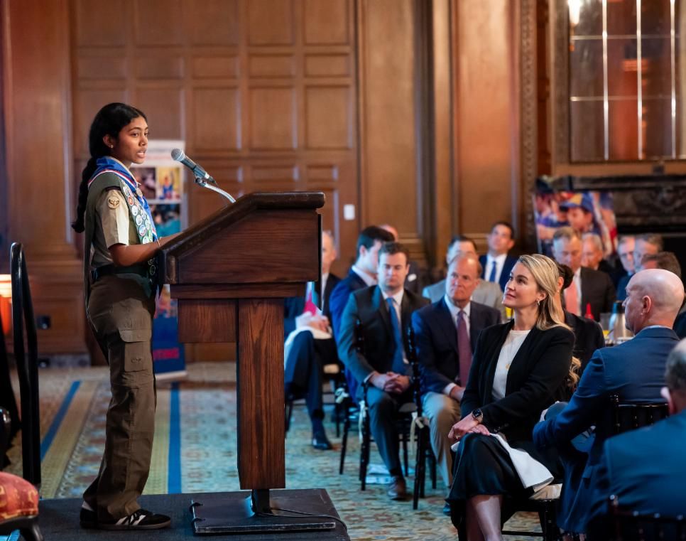 The morning was further elevated by two remarkable Eagle Scout speakers. Christian Hooks, a double graduate of Tulane University with a B.S. in Public Health and a Master’s in Health Administration, shared how Scouting helped shape his journey toward medical school. Sudeshna, a proud member of Troop 423 and Gold Medal Congressional Award recipient, spoke about how Scouting ignited her passion for service and leadership. She will begin her biology studies at UCLA this fall.