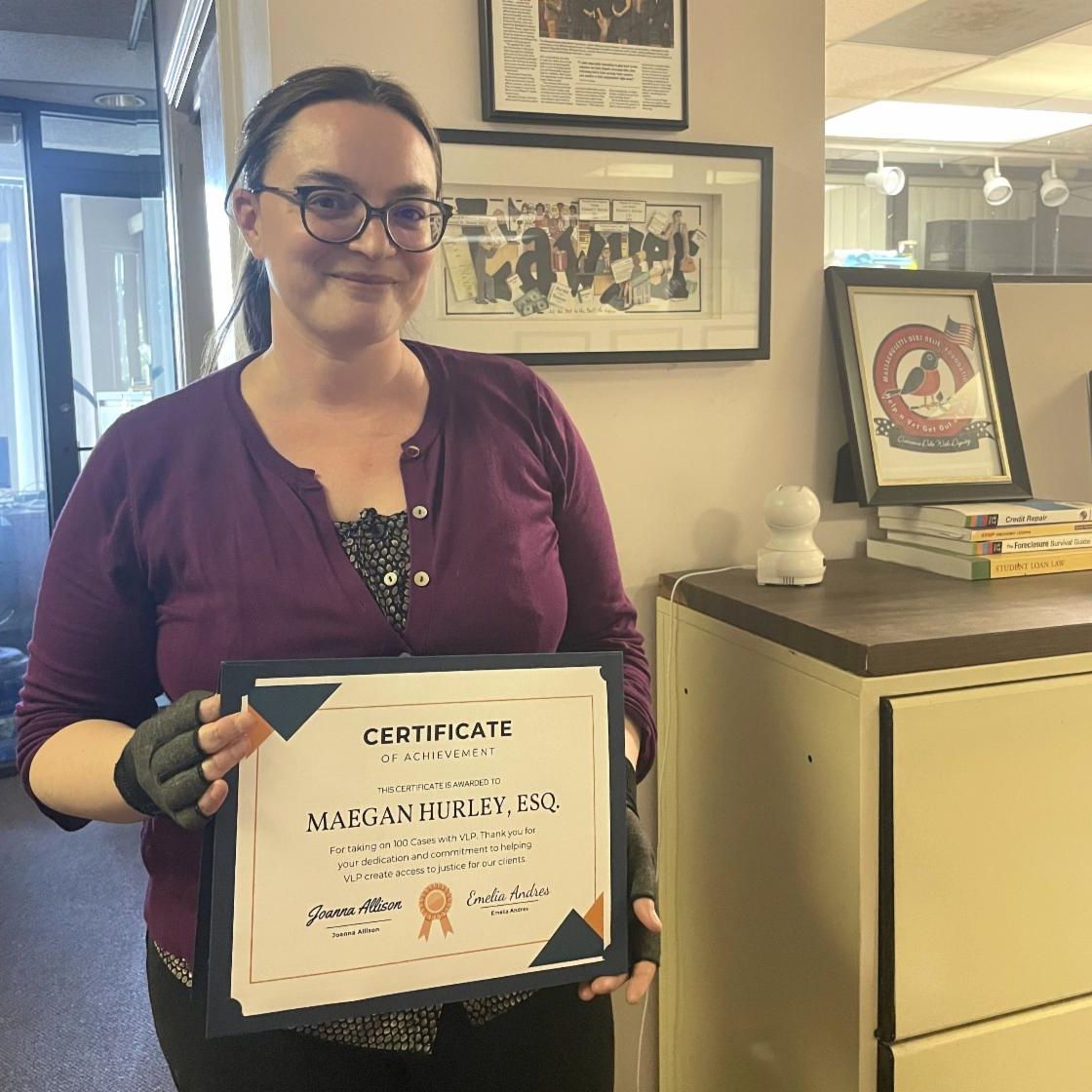 A huge congratulations and thank you to our dedicated Pro Bono Attorney, Maegan Hurley, who recently took on her 100th Bankruptcy case with VLP! Since 2017, Maegan has been working with our Bankruptcy clients, helping to discharge over $2 million in debt. We are continually grateful to Maegan for the difference she has made in the lives of our clients. It is volunteers like her who make a positive impact on our community and support our mission to create access to justice. Thank you, Maegan, for volunteering your time and expertise to VLP, we are so thankful for you!