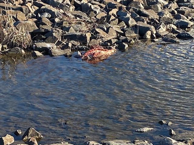 Early on I saw a sad event; Along the side of the pond, near where the water flows out of it and into a rivulet into the woods, I saw a dead deer. I don’t know how the deer died.