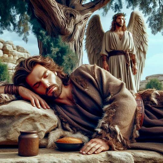 As bold and courageous as Elijah was, he fled in fear from Jezebel’s threats and journeyed into the desert. He was exhausted and collapsed under a Juniper tree, praying for God to take his life. He fell asleep and God sent an angel to revive him. He fed him a cake baked on hot coals and water to refresh him. The angel came to him twice and encouraged him to eat, to get strength to carry on. He later joined with Elisha who followed him everywhere to serve him, be mentored by him, and inherit his anointing.