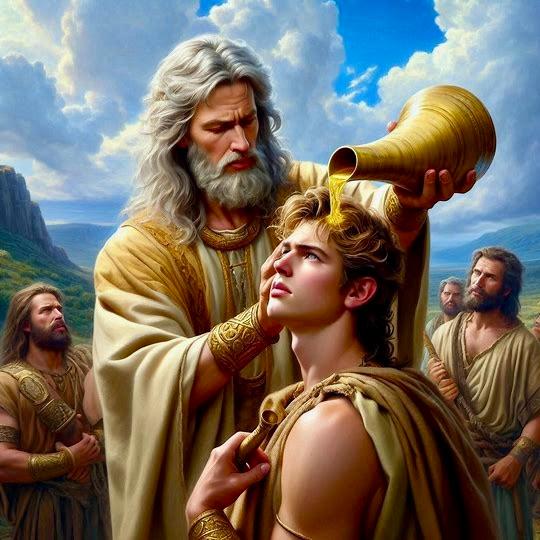 “And Samuel said to Jesse, “Send and bring him. For we will not [e]sit down till he comes here.” So he sent and brought him in. Now he was ruddy, with bright eyes, and good-looking. And The LORD said, “Arise, anoint him; for this is the one!” Then Samuel took the horn of oil and anointed him in the midst of his brothers; and the Spirit of The LORD came upon David from that day forward. So Samuel arose and went to Ramah,”
