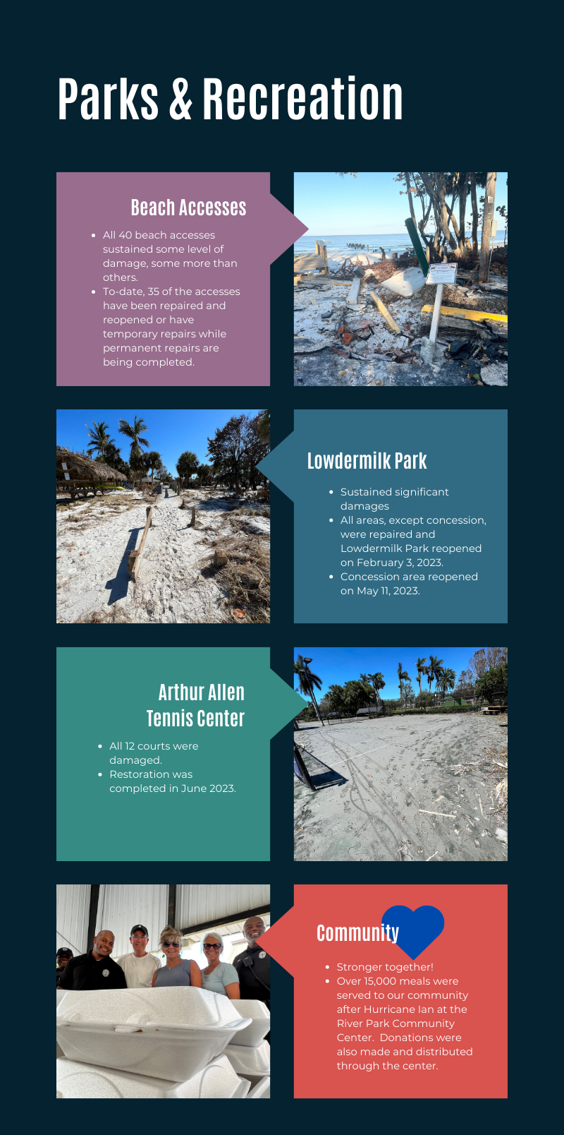 It has been a year since Hurricane Ian devastated our community. As we reflect on the progress made in restoring our beloved town, it is evident that much work has been accomplished, yet there is still much ahead of us. This report serves as a poignant reminder of the profound impact of the storm and the steadfast efforts made to bring our community back to its full vitality.