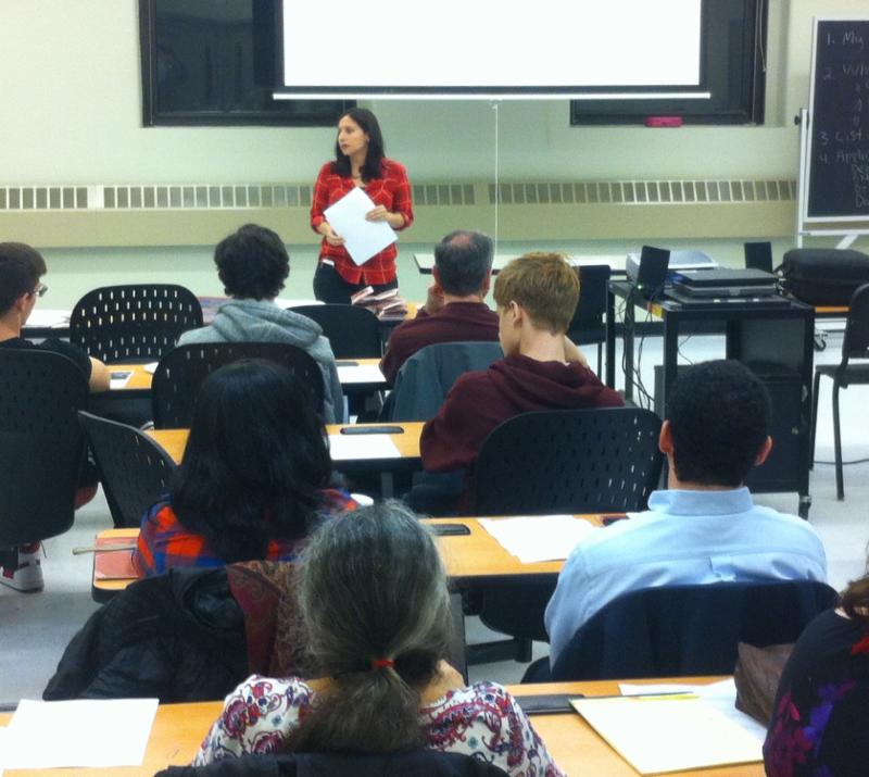Ms. Zafonte presents summer internship opportunities at a PTA meeting.