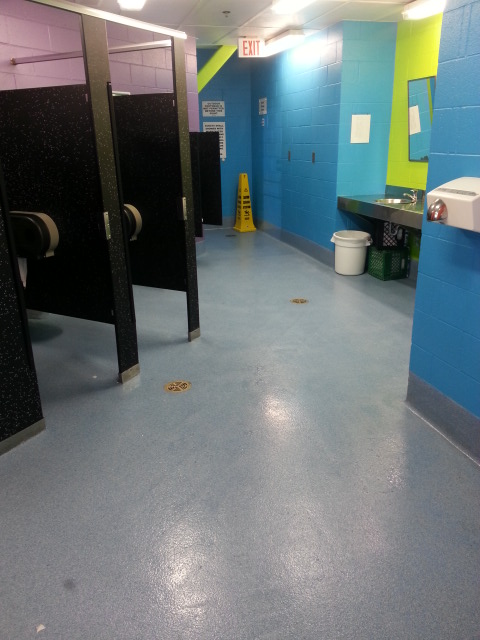 This aesthetic floor consists of the same products and performances used in the Neat Floor with multi-colored vinyl flakes (size options available) being imbedded and fused between product layers providing and appealing look and increase slip resistance.