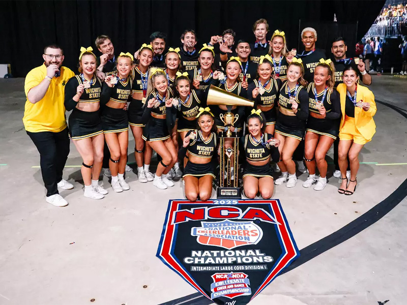 The cheer team won the National Championship in Intermediate Large Coed Division I. In the preliminary round, the Shockers had a raw score of 87.8333 and an event score of 24.3357 with just 0.25 in deductions. In the final round, the Shockers scored 88.0667 for a total event score of 97.5371. WSU finished almost two points in front of second place VCU.